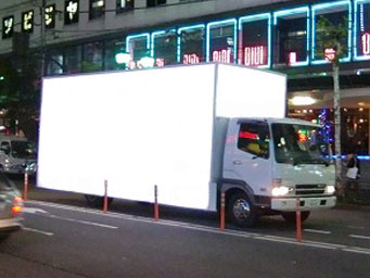 現在の所、広告といえばプリントしたフイルムを貼り付ける 手書きする等が主体で価格も一定ではありません。そこで、広告の新しい形をご提供いたします。 あなたのイメージ通りのメッセージをプロモートする広告媒体です、しかも施工価格も安く品質のバラツキもなく、綺麗にプリントします。 バックライト式あんどんトラック・あんどんコンテナの制作、レンタルも承ります。 |